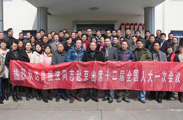 王季丁執行副總裁,李丹總裁等領導代表德力西集團和全體員工,熱烈歡送周振波同志赴京出席全國人代會。希望他不辜負億萬農民工的期望,積極參政議政,認真履行全國人大代表職責,與全體代表一起共商國是,并把農民工兄弟的意見建議帶到全國人代會上去。希望德力西全體員工向周振波同志學習,以盡心盡責做好本職工作的實際行動支持周振波同志開好全國人代會,并在德力西興起一個學先進、趕先進、爭先進的熱潮。